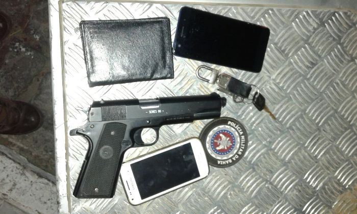 De acordo com a PM a abordagem aconteceu BA 409, próximo ao cruzamento do Bairro Olhos D’água,no sentido Ginásio de Esportes.