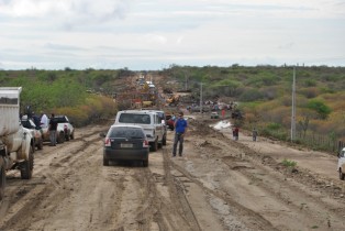 Durante a madrugada desta quarta-feira (15), mais uma vez a população ficou sem poder viajar, ou seja, ficou de 01h hora da da manhã até o meio dia, esperando que as máquinas da construtora, responsavel pelas obras de asfaltamento da BR, concluisse os reparos e liberasse a passagem para veículos.