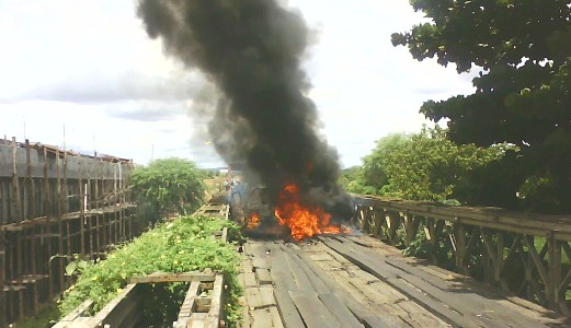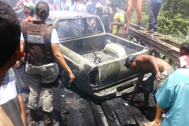 Antes de concretizar a ação criminosa, quatro do assaltantes foram até a ponte sobre o Rio Paraguaçu, principal acesso a cidade de Itaberaba, de onde supostamente chegariam os primeiros policiais para reforçar os trabalhos de perseguição, e colocaram fogo na caminhonete S 10 e para complicar o trabalho da polícia, as chamas atingiram a ponte centenária que é de madeira, e tem uma história, pois foi construída na época de D. Pedro II.