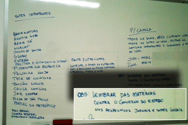 O site CALILA NOTICIAS apareceu em uma lista escrita em um quadro pela Diretoria do PMDB baiano, fixada em uma sala que o partido reservou para atender a imprensa na manhã de quarta-feira (19/01/11). Segundo matéria e foto publicada no site Bahia Noticias, os pmdesbistas dedicaram um tratamento cordial e acolhedor para imprensa com direito a quitutes e refrigerante, porém esqueceram de apagar o quadro da sala reservada aos jornalistas que esperavam pelo fim da reunião da executiva do partido, com indicações que divulgavam a necessidade de agendamento de entrevistas para os seus deputados estaduais e federais e o monitoramento dos veículos de imprensa online, a lousa também indicou uma atenção especial às “matérias contra o governo do Estado”.