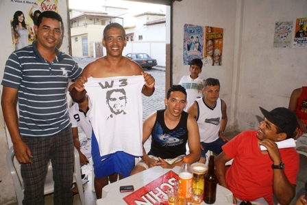 A distancia entre Conceição do Coité e São Paulo é de aproximadamente 2 mil quilômetros, como não é possível sair para ver ao jogo de perto como sempre fez no período que o zagueiro Wallace jogou pelo Vitória, já que Salvador esta dez vezes mais próximo, a alternativa é acompanhar os jogos pela TV. Assim fez o pai do jogador Edson Oliveira Silva, 42 anos, e seus cunhados e tios de Wallace, Edelberto, Erickson e Evanilton Silva dos Reis, na tarde deste domingo (20) quando se organizaram numa mesa de um bar para acompanharem o clássico entre Corinthians e Santos, jogo válido pelo campeonato paulista. Quem esteve no ambiente também foi o avô do atleta, Arivaldo Pereira dos Reis, conhecido por Teiú, ex-jogador de futebol amador em Conceição do Coité na década de 60 e 70, que coincidentemente fez parte da seleção coiteense que recebeu este mesmo Santos, na época, o Peixe aplicou 7 a 2 na seleção coiteense e um dos gols dos coiteenses foi justamente do avô de Wallace. Embora Pelé fizesse parte do elenco santista da época, não esteve no amistoso.