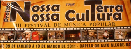 Mais de duas mil pessoas, segundo a coordenação do evento, participaram na noite de sábado (19), na cidade de Capela do Alto Alegre, do encerramento da terceira edição do Projeto Nossa Terra Nossa Cultura, iniciado no primeiro ano da gestão do prefeito Claudinei Novato Xavier (PCdoB) “Dr. Nei”,  com o objetivo de abrir um espaço de divulgação para os inúmeros valores artísticos locais e ainda abrir um canal de divulgação de um estilo de música que não tem espaço na mídia tradicional.  Para o diretor de Cultura do município, Vandelson Dias, conhecido por Decinho, o festival já se consolidou no calendário de eventos e envolveu toda população, desde a zona rural até a sede, pois, desde o dia 09 de janeiro, sempre aos domingos, eram realizadas as etapas nos povoados, concretizando com fechamento no dia 19 de março, data comemorativa aos 26 anos de emancipação política do município. Neste dia também aconteceu o III festival de música popular com a participação de 17 duplas. “Este ano dobrou o movimento em relação aos anos anteriores”, declarou Decinho.