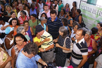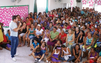Lei Maria da Penha – A professora Celeste Guimarães (D) educadora há 32 anos e diretora do Instituto Social Santa Marta, fez a leitura de um cordel sobre a Lei Maria da Penha.  Na leitura, a platéia pode entender que a Lei de Violência Doméstica e Familiar contra a Mulher, recebeu o nome de Lei Maria da Penha Maia, “uma mulher renasceu das cinzas para se transformar em um símbolo da luta contra a violência doméstica no nosso país”, afirmou Marines Oliveira Carneiro, secretária de mulheres e jovens da entidade.