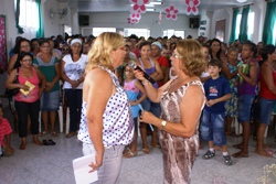 Presença do prefeito e dos vereadores – Os vereadores Célio Roberto da Silva Brito (PHS), José Nivaldo Cordeiro Carneiro (PRB) e José Antonio Ferreira Brito Júnior (PSDB), estiveram presentes no encontro. O prefeito Lauro Falcão (PMDB), chegou no momento final acompanhado do diretor do Hospital Municipal, José Ramiro Filho. “Não poderia deixar de participar deste encontro e reconhecer a importância da mulher para o nosso município”, falou o prefeito Laurinho. Os políticos assistiram e até interagiram na distribuição de brindes patrocinados pela entidade para a mulher mais velha, com a maior quantidade de filhos, que estivesse aniversariando naquele dia ou mesmo que se chamasse “Maria José”, em homenagem a São José. As participantes receberam um “guarda-chuva”, que foram inaugurados com sol, pois a quentura passava dos 35º.