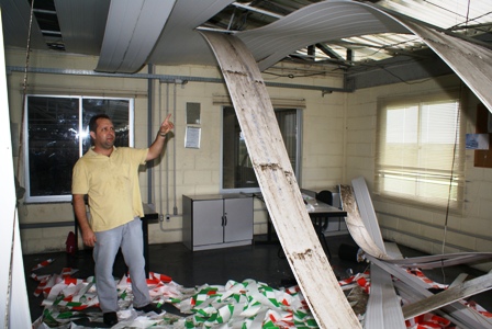 Os ventos arrancaram por completo o telhado “ ele veio por baixo e suspendeu todo telhado e nós aqui na portaria vimos tudo e ficamos assombrados”, relator o segurança Celestino Barbosa, 28 anos. Ainda em estado de choque, o gerente, gaúcho natural do município de Campo Bom-RS, disse ao CN que foi tudo muito rápido. Ele e a auxiliar Suzana Cavalcante estava no escritório quando tudo começou e tiveram que sair correndo, pois toda estrutura do forro da área onde funciona o escritório, começou a cair. “Parecia uma cortina se abrindo”, contou Suzana.