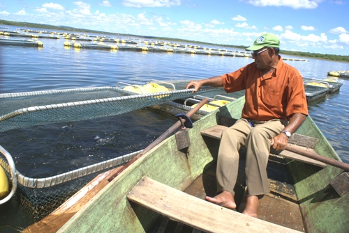 Acompanhado da prefeita Maria Edneide Pinho (DEM), “Nenca”, Brasileiro conheceu a experiência da criação de peixes nos tanques-rede, ou seja, estruturas retangulares que flutuam na água e confinam peixes em seu interior. “Esse equipamento é constituído basicamente por flutuadores que sustentam submersos na água redes de náilon”, relatou o pescador e secretário geral da Associação, Jurandir Ferreira Lima, 46 anos. Além de integrante da associação, ele também é criador e tem tanques-rede em sociedade com um colega.