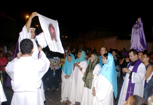 Após a encenação o pároco ordenou que os homens pegassem o andor com a imagem do Senhor Morto e as mulheres Nossa Senhora das Dores, em seguida iniciou a peregrinação pelas ruas do centro da cidade. A personagem de Verônica, vivida por Joseanne Dias era o motivo das paradas. A atriz depois de ouvir o som da matraca subia em um banco e entoava o canto em latim que traduzido diz: “A voz todos que passai, parai, parai…”, seguido de exibição de um pano com a pintura da face de Cristo cujo apresentação aconteceu no largo da igreja, antes da saída da procissão, em frente aos Correios, largo do Mercado, Semáforo, saída para Salgadália, Fonte Luminosa, Praça do Fórum e finalizou na igreja matriz onde aconteceu o oficio.