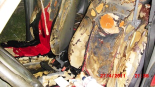 Adrielle encontrou no carro uma garrafa de 600ml de álcool, usado em limpeza domestica, a porta do veiculo foi forçada, dando acesso aos vândalos consumarem o fato, muito nervosa Alana acionou a Policia Militar através do 190, segundo vizinho da prima de Alana, foi ouvido barulho de uma moto se afastando do local minutos antes de uma criança da casa da frente perceber a fumaça, a mesma avisou ao pai o senhor José que rapidamente chamou Alana na casa de sua prima Fernanda, o mesmo senhor José foi que heroicamente se arriscou em abrir a porta do veiculo e jogar um balde de água, o fogo ainda reagiu, mas após mais dois baldes cedeu, o veiculo foi encaminhado para Delegacia Civil onde será periciado, segundo a proprietária o mesmo possui seguro: