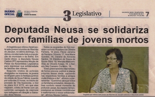 “Esse grave episódio interrompeu de forma precoce sonhos e planos próprios dessa idade causando nas respectivas famílias e amigos muita tristeza e dor”, afirmou a parlamentar. “Queremos abraçar todos os familiares enlutados desejando-lhes conforto nesse momento de profundo pesar. Ao mesmo tempo, prestamos as nossas condolências e reafirmamos a nossa solidariedade”, afirmou Neusa Cadore.