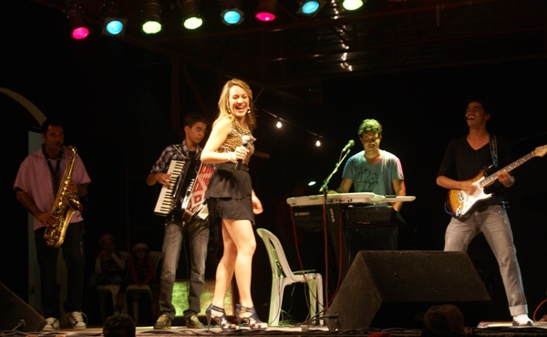 Cínara dividiu o palco com músicos jovens e todos naturais de Riachão do Jacuípe. Alexandre no sax, Mário na sanfona, Fagundes no teclado e no contra baixo, Erivam.