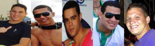 Além de Diego Carvalho Dantas, 28 anos, condutor do Gol, morreram no local Marleson Jerônimo Carvalho (Jerinho), 26, José Leônio Gonçalves Neto (Neto) 29, Raul Menezes Teixeira, 26 e Renato Lima do Espírito Santo, 28 anos.