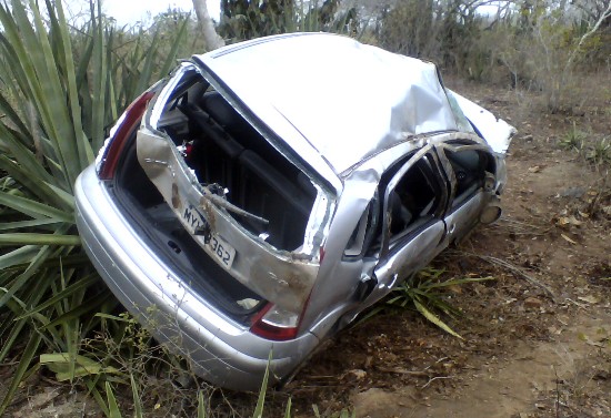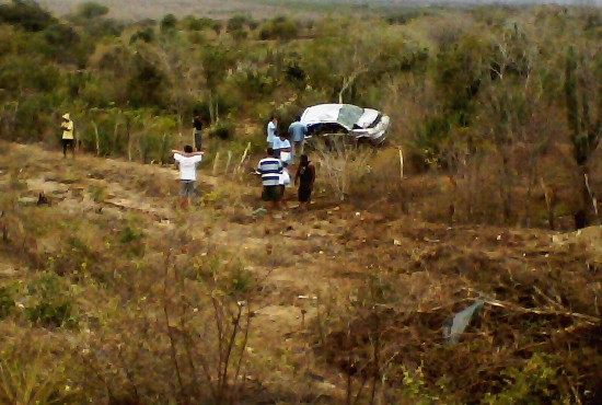 Pelas marcas dos feios, a médica se assustou ao se deparar com os cones e com a caminhonete e perdeu o controle do carro, capotando várias vezes, chegando a passar por cima da cerca que divide a estrada com a roça de sisal.