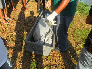 Em torno das 16h o carro do Instituto Médico Legal de Serrinha chegou com os técnicos e o Policial Civil Geovane que preencheu a guia de transferência com o objetivo do corpo ser encaminhado para o DPT de Feira de Santana.