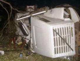 Um grave acidente aconteceu no quilômetro 5 da BA que liga a cidade de Mirangaba a Jacobina. O fato trágico foi registrado na noite de sábado,24, por volta das 19h, próximo ao povoado de Campo Grande, localidade que faz divisa com o município de Jacobina. O caminhoneiro Marcelino Gomes da Silva, 48 anos, que acabara de descarregar uma carga de cimento em Mirangaba e voltava para passar o Natal com seus familiares, acabou morrendo no local. O veículo, uma carreta branca, placa JTI 8635, licença de Capim Grosso, ficou bastante destruída com a violência do acidente.
