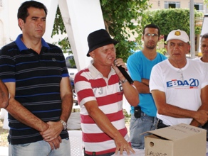Autoridades presentes – O prefeito Lauro Falcão Carneiro (PP), acompanhado dos vereadores Célio Roberto Silva Brito, Adonias Alves dos Santos, Valdinei Pereira de Jesus, Orlando Andrade de Menezes,José Carlos de Matos Soares, e do diretor do Hospital Municipal, José Ramiro Ferreira Filho, esteve na abertura da feira e disse aos agricultores que havia chegada de Brasil e a agricultura familiar esteve em sua pauta de viagem e trazia boas notícias para classe a exemplo da garantia dos recursos das emendas parlamentares dos deputados Edson Pimenta (PSD) e João Leão (PP), para aquisição de duas patrulhas agrícolas que deverão ser adquiridas no próximo ano. “Também trago a notícia que iremos construir no próximo ano 300 moradias na zona rural através de recursos de uma emenda parlamentar do deputado Edson Pimenta, nosso amigo”, garantiu Laurinho, como é chamado o prefeito.