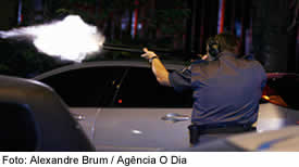 No local já foram disparados vários tiros, em sequência de três. São utilizados fuzil 556, carabina calibre 12, pistola .40, revólver calibre 30 e uma submetralhadora 9mm. Esse é o primeiro teste e ainda devem ser realizados mais dois nesta noite.