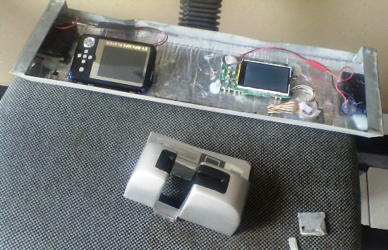 O equipamento é composto com um chip que deve ser utilizado para clonar o cartão magnético e duas câmaras filmadoras que segundo a policia é usada para filmar o momento que o cliente digita a senha.