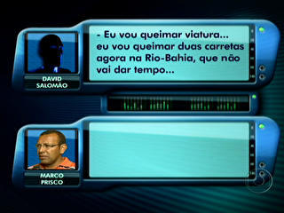 Leia abaixo um dos trechos de conversa: – Prisco: Alô, oi. Desce toda a tropa pra cá meu amigo. Caesg e você. Desce todo mundo para Salvador, meu irmão… Tou lhe pedindo pelo Amor de Deus, desce todo mundo para cá… – David Salomão: Agora? – Prisco: Agora, agora. Embarque… – David Salomão: Eu vou queimar viatura… Eu vou queimar duas carretas agora na Rio/Bahia que não vai dar tempo… – Prisco: fecha a BR aí meu irmão. Fecha a BR.