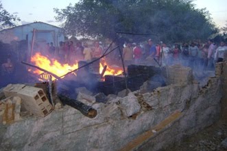 Revoltados, populareas incendiaram a casa da acusada. A polícia técnica esteve no local e, a partir de agora, vai intensificar as investigações.