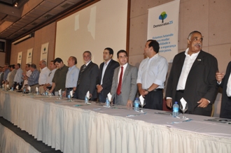 Esteve em Salvador participando do evento, o ex-prefeito de Barrocas, Edilson Lima, que deverá ser o único candidato encabeçado pelo DEM, nos 20 municípios do Território do Sisal. Nos demais municípios, o partido deve integrar as diversas coligações, a exemplo de Riachão do Jacuípe, onde o presidente do diretório municipal, Raimundo Flaconere Rios, “Chuá”, falou da possibilidade da coligação com o PDT, onde vai apresentar o nome de Tânia Matos como candidata. Em 2008, Tânia disputou a eleição pelo DEM e obteve 43,27% dos votos válidos e em setembro de 2011 migrou para o PDT. Mesmo não tenho apoiado o deputado Tom na eleição de 2010, Chuá fez questão de pousar para uma foto ao lado do parlamentar e do senador José Agripino.