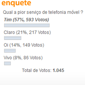 A segunda enquete relacionada a telefonia móvel aconteceu no período de 08 á 15 de julho e teve os seguintes números: