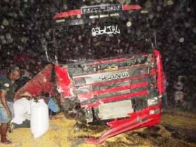 No acidente morreu o motorista do Fiorino,que até o fechamento da matéria não havia sido identificado. No impacto, o Fiorino saiu da pista, já a carreta que não chegou a virar completamente, ficou com os dois compartimentos de carga emborcados para fora da pista.