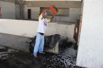 O boato do incêndio na rodoviária mobilizou a prefeitura que mandou dois caminhões pipa com água para controlar o fogo. O incendiário não temeu o flagrante de ser levado para a delegacia que fica a 20 metros do local.