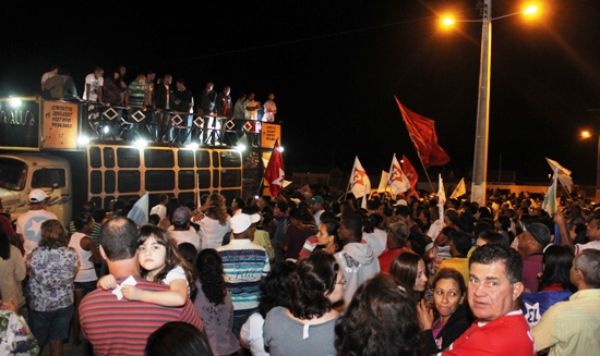 Após o comício da Rua Duque de Caxias a comitiva foi até Casas Populares. Antes de Assis e Alex usarem da palavra, o discurso do vereador e candidato a reeleição Betão, chamou a atenção do público presente. O edil passou a ser o principal alvo do prefeito, pois várias denúncias de irregularidades do gestor partiram do vereador petista que, segundo ele, o prefeito vive dizendo que é questão de honra derrotá-lo.