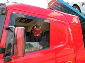 O motorista de um caminhão-cegonha foi preso em flagrante na última sexta-feira (7) por direção perigosa na BR-324, no município de Amélia Rodrigues, após denúncias de testemunhas. Para atingir o assumido objetivo de assustar os condutores, além das manobras que forçavam os outros veículos para fora da rodovia, o homem tinha um elemento extra: uma máscara do diabo. O caminhoneiro, cuja verdadeira identidade não foi divulgada pela Polícia Rodoviária Federal (PRF), afirmou que estava a caminho de São Paulo, após deixar uma fábrica de veículos em Camaçari. Ele foi encaminhado à Polícia Judiciária da região.