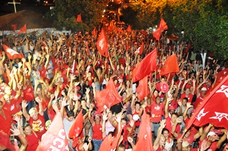 Em Valente, três candidatos disputaram a prefeitura. Ismael (PT), Zenóbio (PP) e João Melquíades (PHS). Antes mesmo do término das votações e das apurações das urnas eletrônicas, os eleitores de Ismael já estavam em ritmo de comemoração em frente ao maior colégio eleitoral do município.