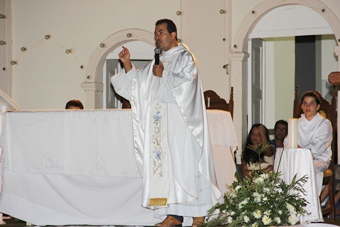 Durante a homilia Pe Charles elucidou aos fiéis os princípios e fundamentos do Ano da Fé na Igreja Católica inaugurado pelo Papa Bento XVI este mês e que acontecerá até novembro do próximo ano. Durante a celebração na praça foi realizada a 1ª comunhão dos jovens do curso de Crisma.