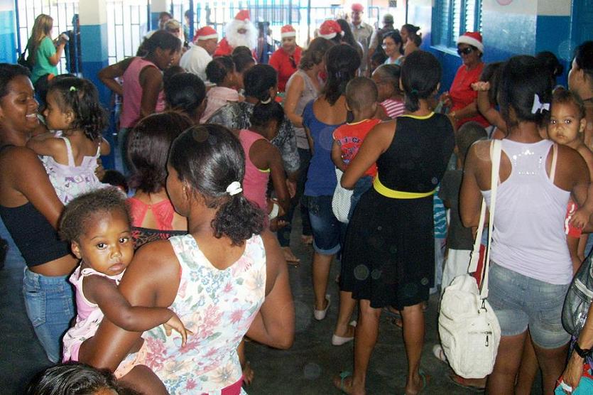 inicialmente a comitiva visitado a creche “Casulo Gracinha Loureiro” localizada na cidade alta do município, onde, contando com a participação de professores e da direção da instituição, uma faixa de oitenta crianças foram agraciadas com presentes diversificados.