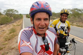 A equipe CN encontrou os aventureiros agora a pouco vindo de Riachão do Jacuípe e na altura da Fazenda Pedra Branca eles fizeram uma parada para atender a nossa equipe. Um fato curioso revelado por Augusto chamou atenção, ele não sabia pedalar quando era fumante, ao abandonar o cigarro comprou uma bicicleta para aprender a pedalar e passou a praticar exercícios, quando surgiu a ideia de sair de São Paulo até Valente.