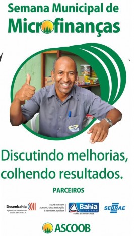 Entre os dias 10 e 15 de dezembro de 2012, a ASCOOB Sisal estará realizando a I Semana Municipal de Microfinanças de Serrinha. O objetivo do referido evento é estimular as ações de empreendedorismo, inclusive social no município de Serrinha, através de ações microfinanceiras.
