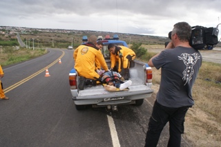 brigada volunaria - anjos da vida - simulação.2Mas todo esse trabalho de pessoas abnegadas começou com muita dificuldade, sem veiculo para socorrer as vítimas eles se deslocavam para o local do acidente, imobilizavam as vítimas e seguiam muitas vezes na carroceria de caminhonete e pick-up, a fim de salvar vidas e com certeza salvaram, pois o socorro exige preparação e a turma da Brigada Anjos da Vida se prepara para este tipo de ação.