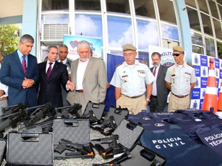 O sistema de segurança pública da Bahia conta, a partir desta sexta-feira (11), com o reforço de mais veículos, armamentos e equipamentos de proteção individual para as polícias Militar e Civil e Departamento de Polícia Técnica (DPT). Cerca de R$ 38 milhões foram investidos em 370 viaturas, 8.440 armas, 17.900 coletes a prova de bala, além de equipamentos como tablets, algemas, munição e uniformes.