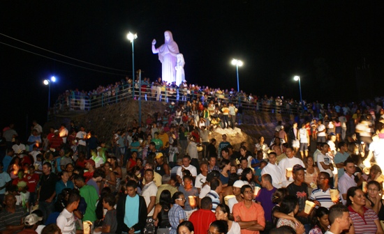 Um verdadeiro espetáculo de luz e fé, quando a grande multidão depois de percorrer cerca de 3 km chega a colina de Santana com a vela acesa protegida do vento por cartolina branca o que possibilita um belo cenário.Na colina é montado um grande espaço aproveitando a vegetação e as rochas para a encenação.