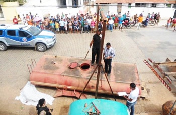 De acordo com as informações de moradores, a vítima passava por baixo do tanque no instante em que suportes de uma “tralha” – espécie de elevador mecânico para erguer objetos pesados – se desprenderam e, consequentemente, fez com que o tanque caísse por cima do corpo de Pedro.