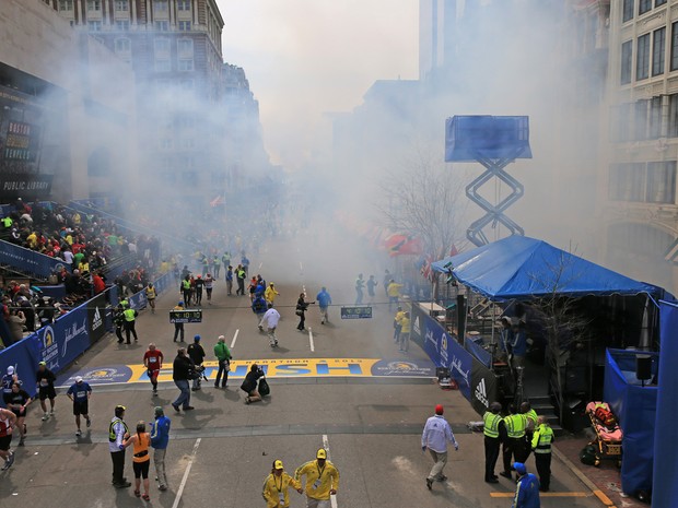 Duas fortes explosões deixaram mortos e feridos na chegada da Maratona de Boston, nos EUA, nesta segunda-feira (15). Segundo a polícia, as explosões foram causadas por duas bombas “poderosas”.