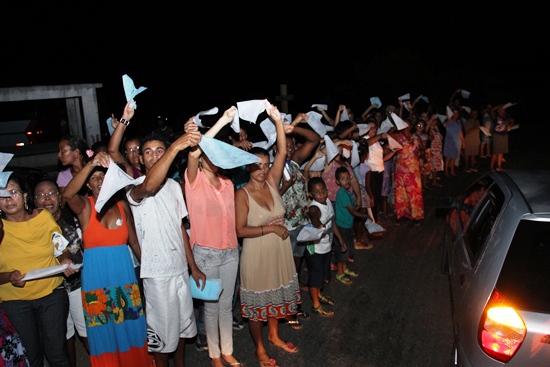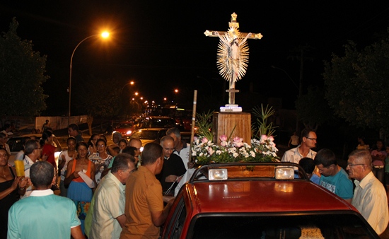 Riachão do Jacuípe – Os fiéis foram recepcionar a romaria no contorno do Povoado de Chapada com a BA 120. Um grupo caminhou até a Igreja de Santa Terezinha e uma longa carreata se formou no trajeto de 02 km. As coordenadoras da comunidade eclesial de base, Eliana Gomes e Jeselina Souza externaram alegria em receber na comunidade a imagem peregrina e confessaram seus pedidos, ou seja, que intercedesse pelas chuvas.Em Chapada foi uma passagem rápida o padre Vilmar carregou o crucifixo até o interior da Igreja e depois de rezar o Pai Nosso seguiu em carreata até a sede de Riachão do Jacuípe, onde milhares de fiéis se uniram aos coiteenses.