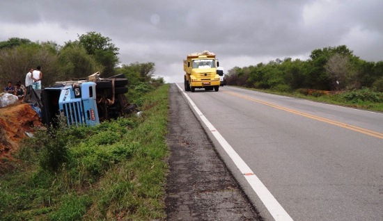 Segundo informações de um homem que se identificou como representante de uma seguradora, o motorista da carreta Rodrigo de Jesus, contou para o mesmo, que estaria segundo de São Paulo, com destino a Fortaleza-CE, quando foi surpreendido por um caminhão 16-20e demais dados não anotados, que vinha sentido contrario, tentando ultrapassar outros veículos que estava na frente, e ao tentar tirar a carreta para o acostamento, no intuito de evitar a colisão de frente, perdeu o controle, vindo a tombar.