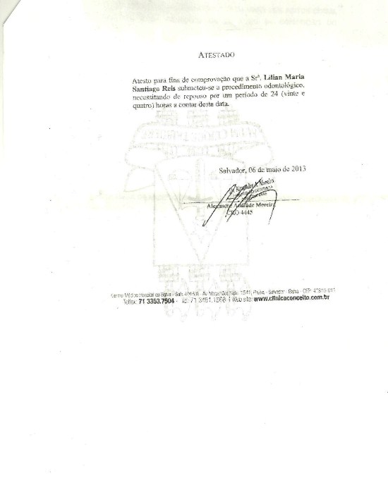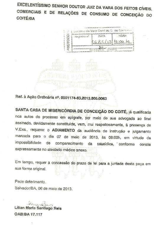 “Foi apresentado um atestado médico alegando que a advogada [Lilian Maria Santiago Reis] submeteu-se a procedimento odontológico necessitando de repouso por um período de 24 horas e eu acatei”, comunicou Gerivaldo.