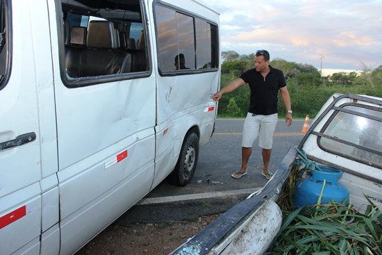 O cobrador da Van Euvaldo Souza da Silva (foto) contou que antes da Van bater no Fiorino os dois pneus do lado do passageiro ficaram fora do chão, “ vi que o carro estava virando, parecia está em câmera lenta, de repente bateu no Fiat e voltou para a posição normal, o carro do coroa serviu de calço para o nosso não virar”, narrou o cobrador.