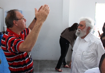 O teólogo chegou ao auditório do Cenos por volta das 14h, deveria imaginar quantas luzes de flash de câmaras fotográficas e quantos livros teria que autografar.O vendedor de livros Reny Souza de Oliveira, viajou de Capim Grosso para Santaluz apenas para apertar a mão de Leonardo e fazer uma foto ao seu lado.” Tenho fotos com os outros e autógrafos, estava faltando com Leonardo Boff essa figura conhecida no mundo todo e não podia perder esta oportunidade”, falou com satisfação,Reny do Livro como é conhecido.