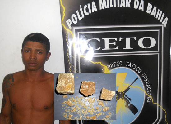 Na tarde de segunda-feira, (03) uma guarnição da Companhia de Emprego Tático Operacional – CETO, do 16º Batalhão/Serrinha, quando realizava rondas pelo Bairro da Rodagem, percebeu três pessoas em atitudes suspeita, que ao serem abordadas foi encontrado com: Murilo Brandão de Santana, 18 anos uma grande quantia de droga tipo crack, também foi conduzida a Delegacia duas menores residentes a cidade de Araci. Suspeita-se que parte da droga iria seguir para aquela cidade.