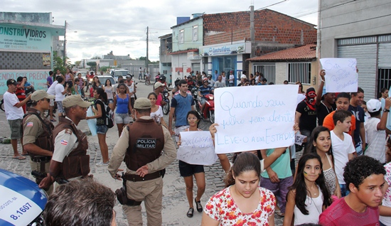 Quem poderia deixar por um minuto a segurança da manifestação e protestar, já que não teve nenhum trabalho no ato, foi a policia militar, pois no fim da manhã precisou se deslocar próximo a Serrinha em perseguição ao um motorista de uma van de Simões Filho que havia abastecido em um posto da cidade e saiu em disparada sem pagar, a guarnição alcançou o motorista, o conduziu a delegacia da cidade e quando menos espera, a polícia depara com o motorista (camisa branca) do lado de fora da Delegacia e sem acompanhamento de policial.” Ninguém tem culpa, a culpa é da lei”, bradou um PM.