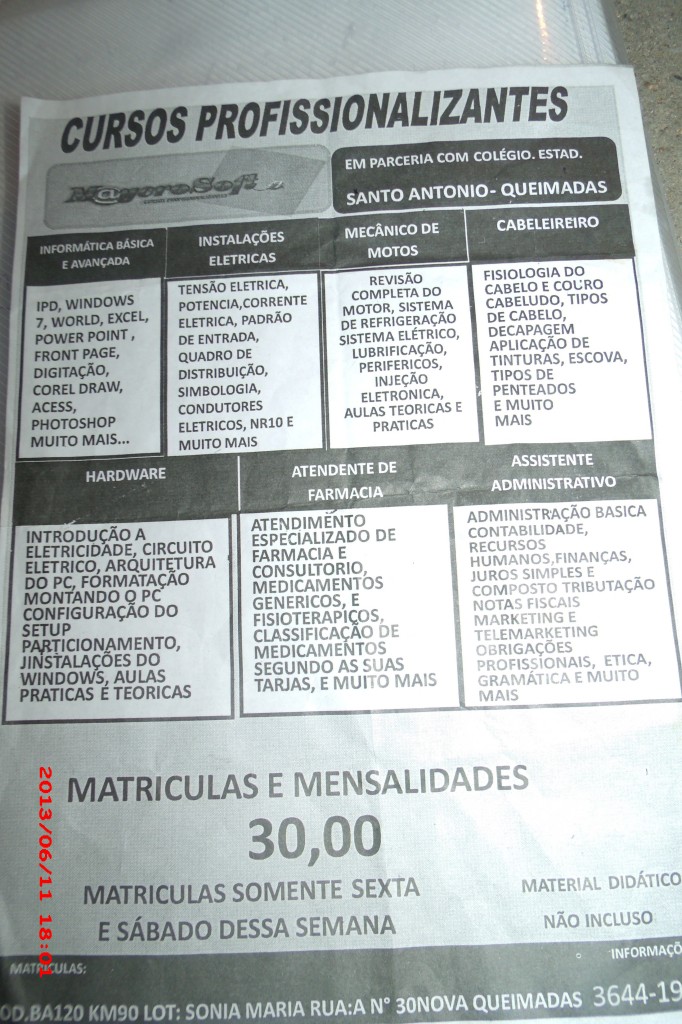 Na tarde da última terça-feira (11), por volta das 16h, vários alunos da cidade de Queimadas no Território do Sisal compareceram à delegacia de Polícia Civil para prestar queixa sobre a não realização do curso profissionalizante Maycrosoft.