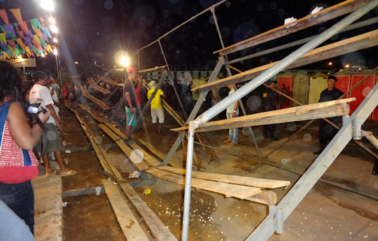 A estrutura de ferro e madeira foi montada por uma empresa contratada pela prefeitura para a abertura dos festejos de São João na cidade com a realização de apresentações de quadrilhas juninas. Após o acidente, a arquibancada foi desmontada.