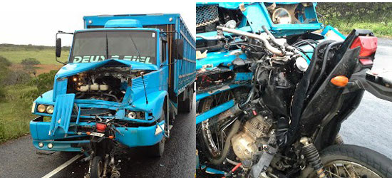 A Moto YAMAHA, cor preta, Licença de Ribeira do Pombal, placa policial NYK-7722, o caminhão Mercedes Bens boiadeiro, placa policial, JOP-2464 de Ipiaú- BA, foram levados para a delegacia de polícia civil de Ribeira do Pombal, onde aguardam liberação. A moto teria invadido a contramão o que resultou na colisão entre ambos.