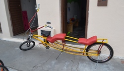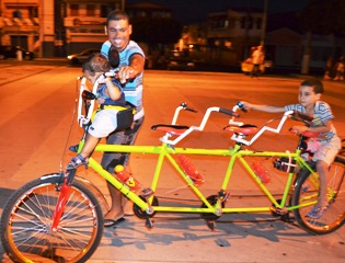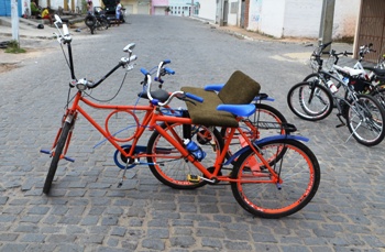 Boba – Foi, fiz uma bike que é preciso subir em um poste para montar, depois veio outra que dobra no meio, mas eu tinha vontade de fazer uma que levasse três pessoas, fui a Coité e procurei Alex que montava carro de som, levei os quadros, já que era aproveitado de sucata, fiz as bicicletas e ai foi somando e agregando algumas pessoas que já pedalavam em Valente, ai comecei a fazer uso das mesmas e passei a sentir melhoras no meu estado físico, eu era muito sedentário.